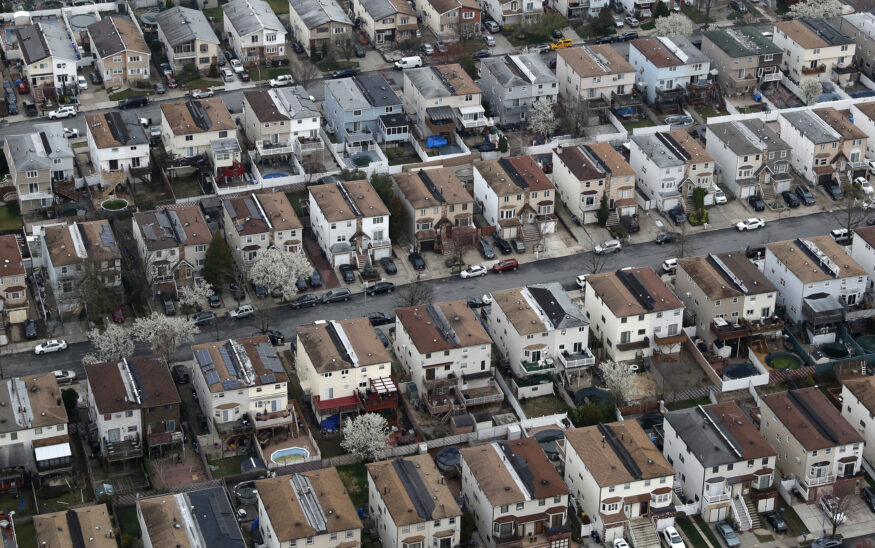A densely populated residential neighborhood of Staten Island is seen from above New York City, U.S., March 30, 2020. REUTERS/Mike Segar/File Photo