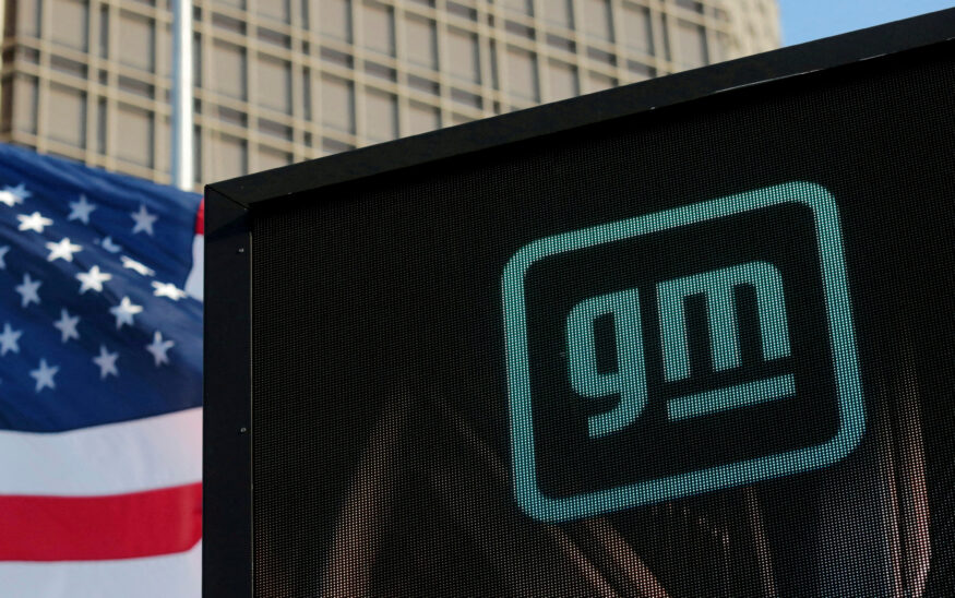 The new GM logo is seen on the facade of the General Motors headquarters in Detroit, Michigan, U.S., March 16, 2021. Picture taken March 16, 2021. REUTERS/Rebecca Cook/File Photo/File Photo