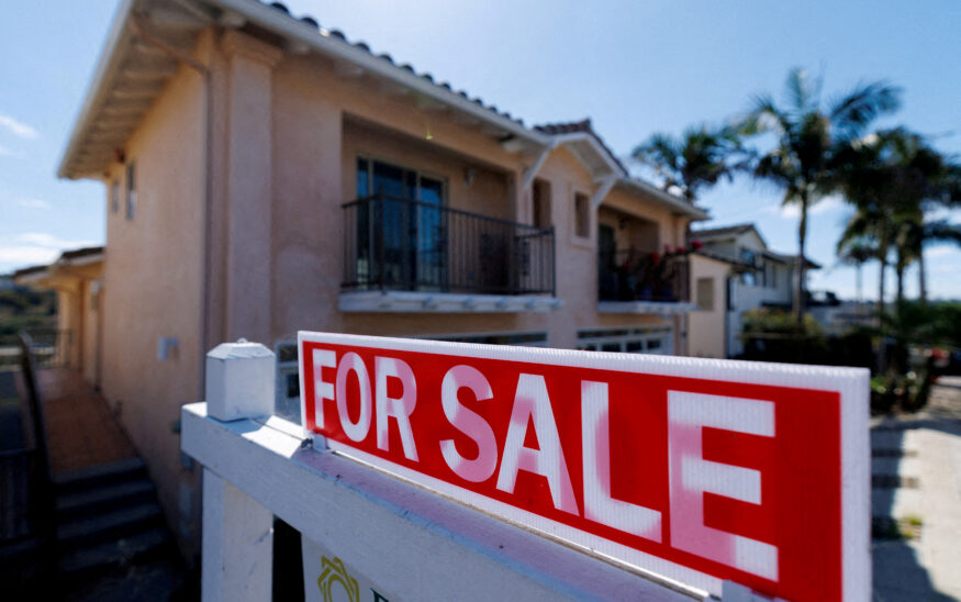 A for sale sign is shown for a residential home in Encinitas, California, U.S. July 25, 2025. REUTERS/Mike Blake/File Photo